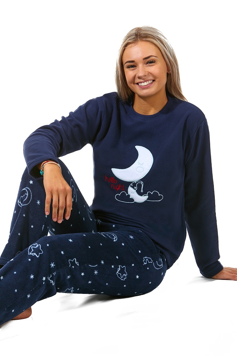 Tmavě modré se vzorem noční oblohy luxusní hřejivé dámské pyžamo Zimní měsíc