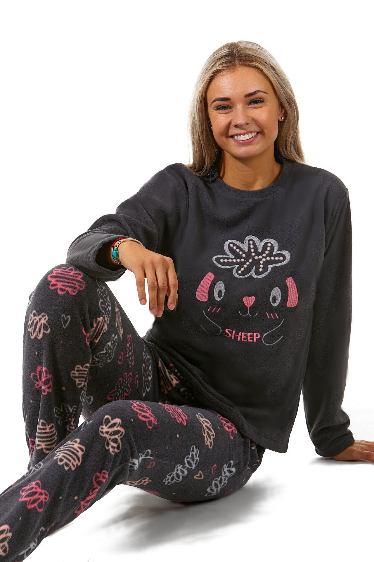 Tmavě šedé luxusní hřejivé dámské pyžamo duhová ovečka