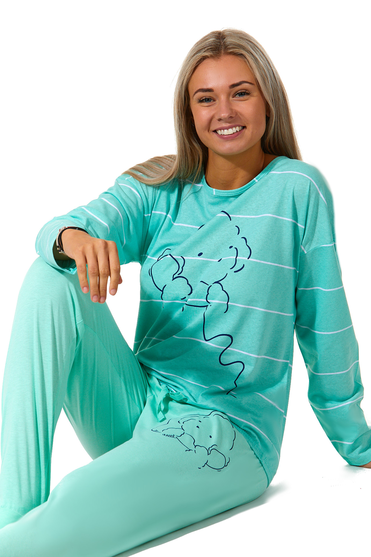 Pyžamo má dlouhou délku kalhot a triko s dlouhým rukávem, dokonale barevně vyladěné