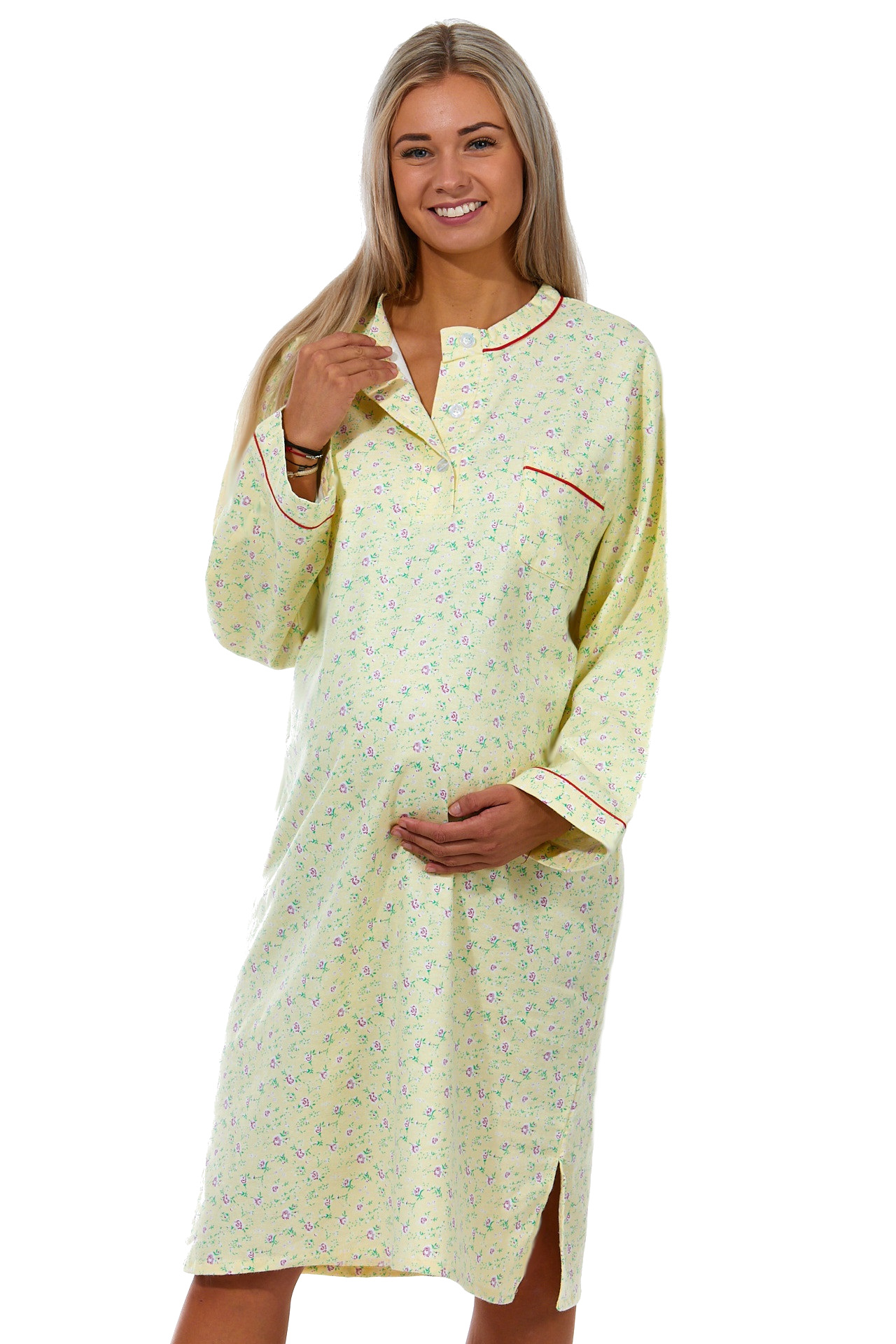 Žlutá květinová flanelová extra teplá noční košilka kojící - dlouhá