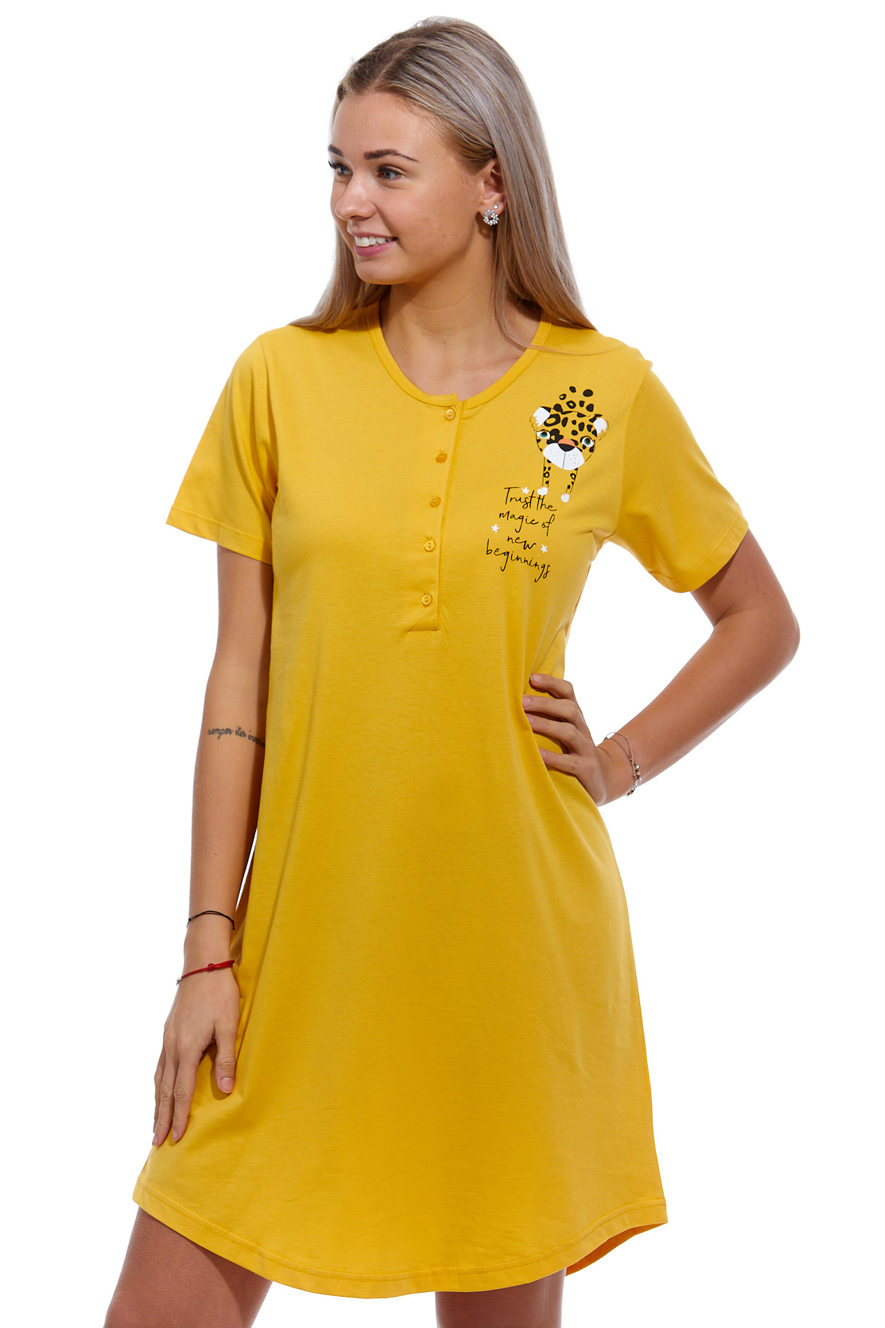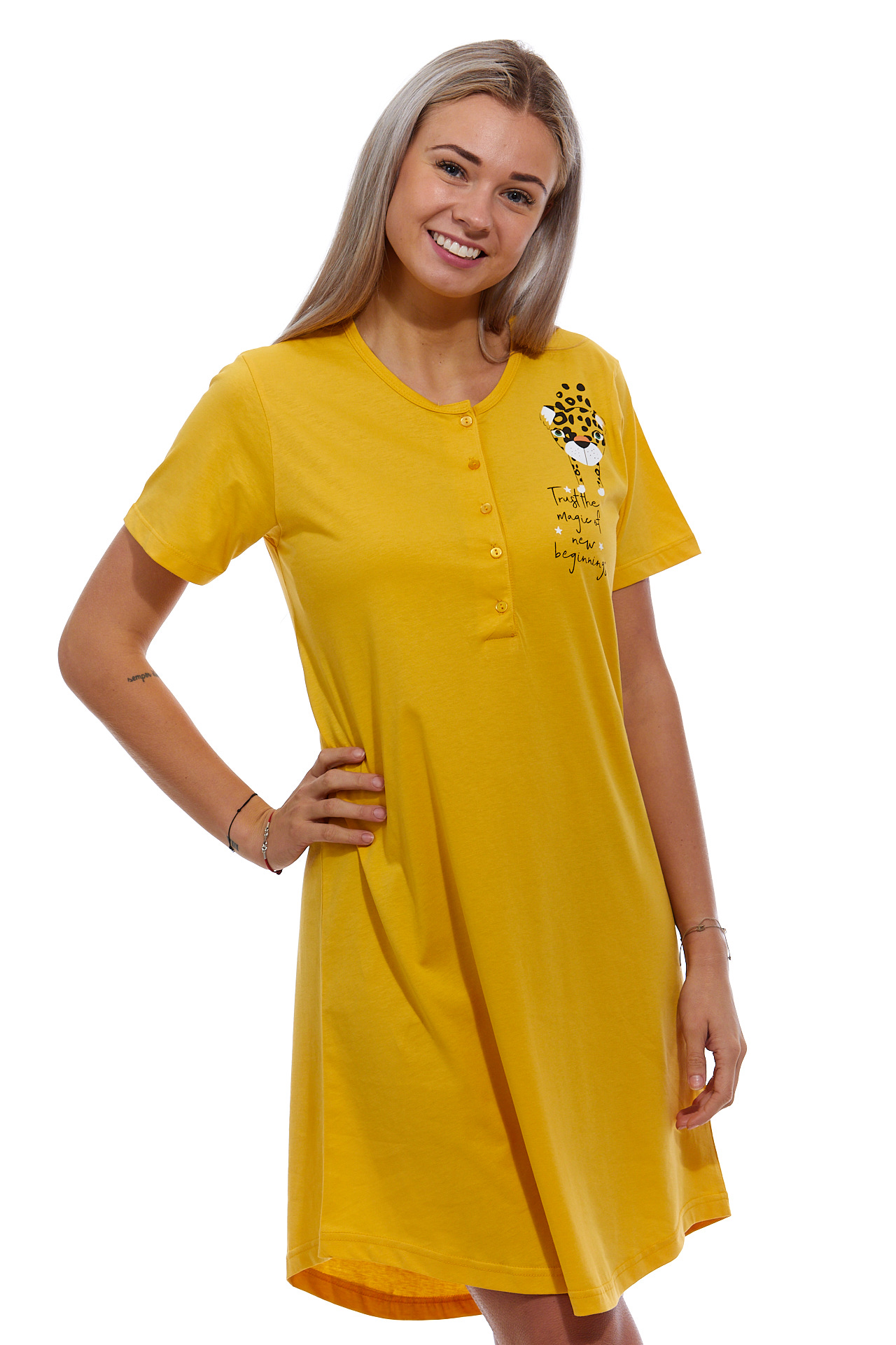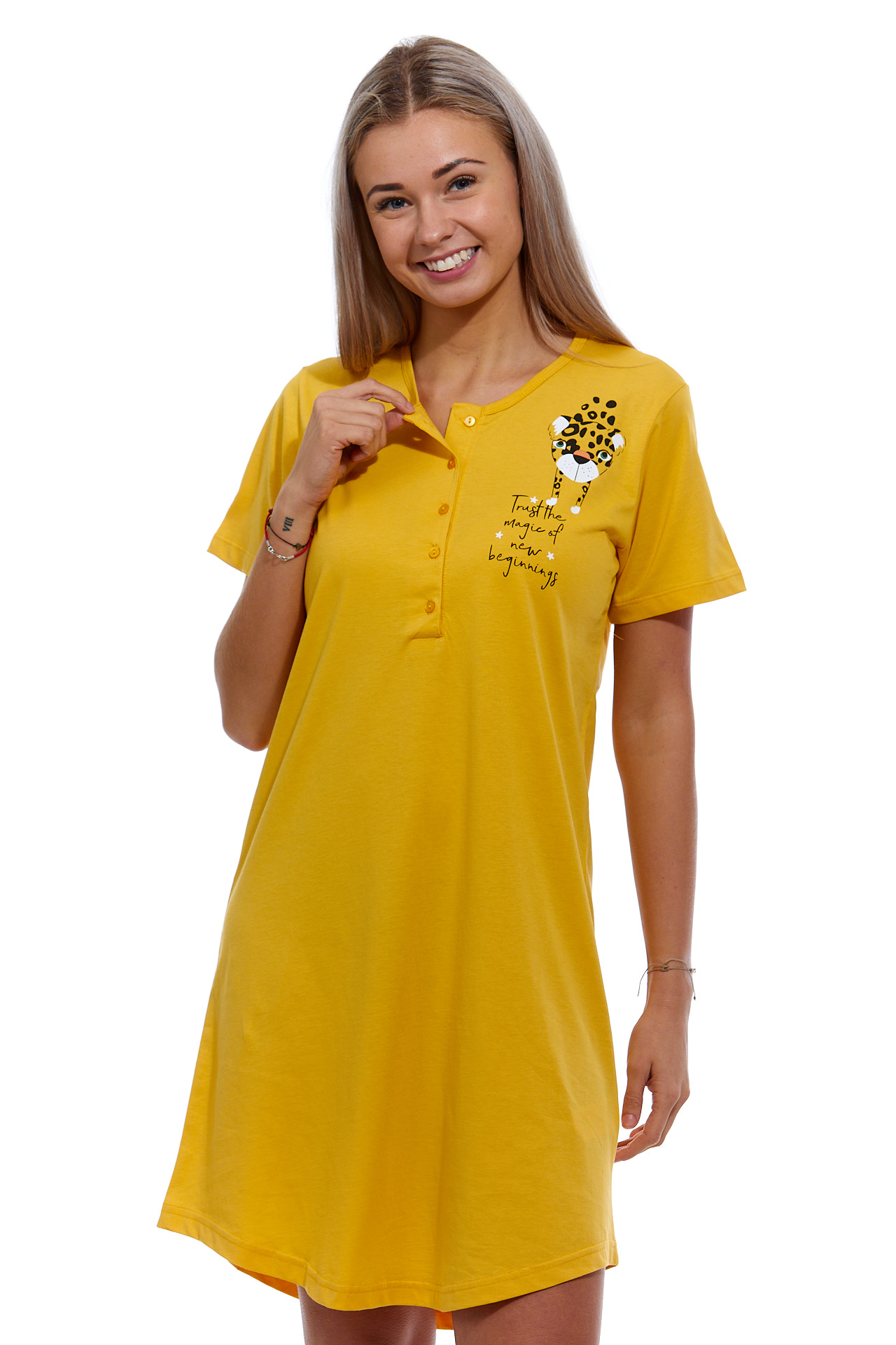 Žlutá noční košilka pro ženu na knoflíky JAGUAR