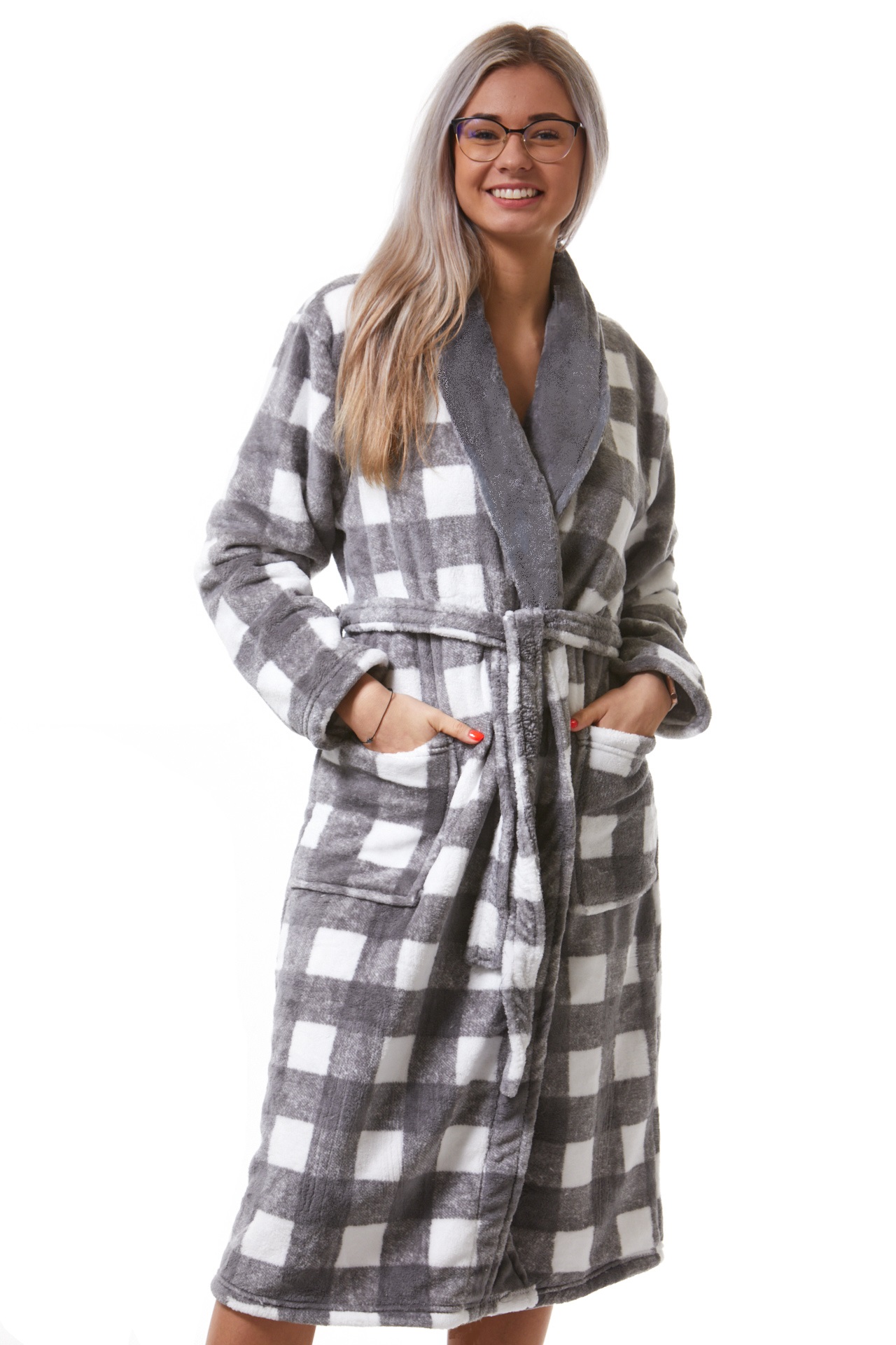 Župan dámský s límcem z krásného huňatého materiálu, má dvě hluboké kapsy po stranách