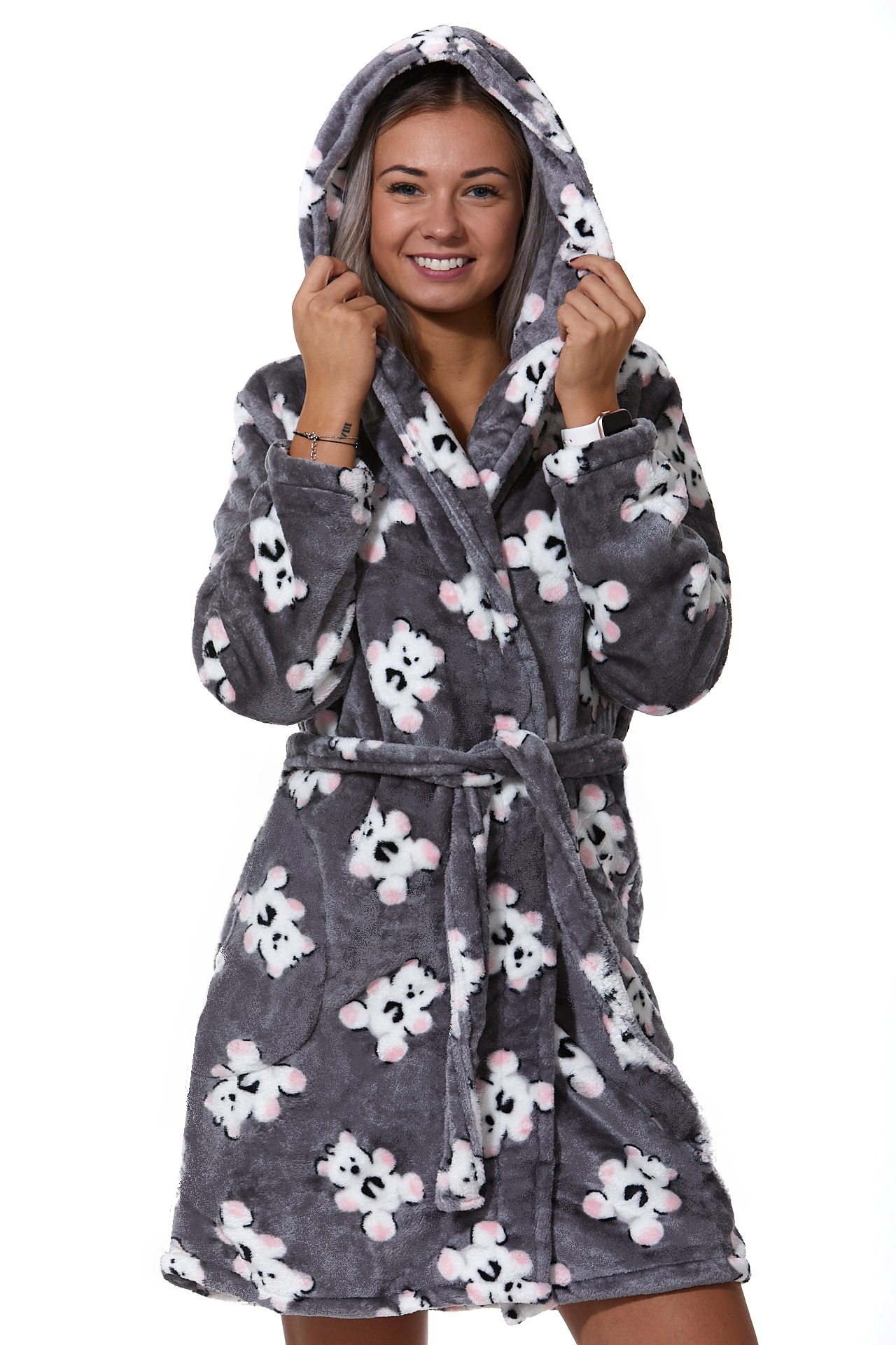 Šedý župan do porodnice huňatý s Medvídky 1Z1211