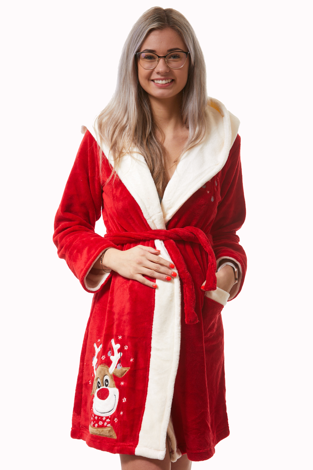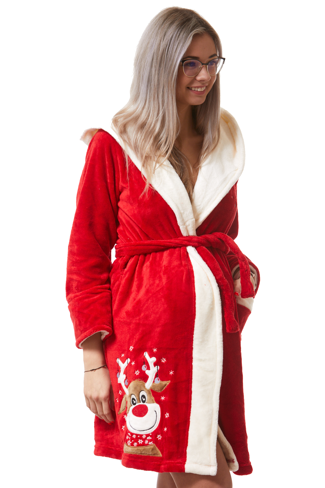 Červený i bílý vánoční huňatý župan pro těhotné i do porodnice na kojení se Sobem 1Z1390