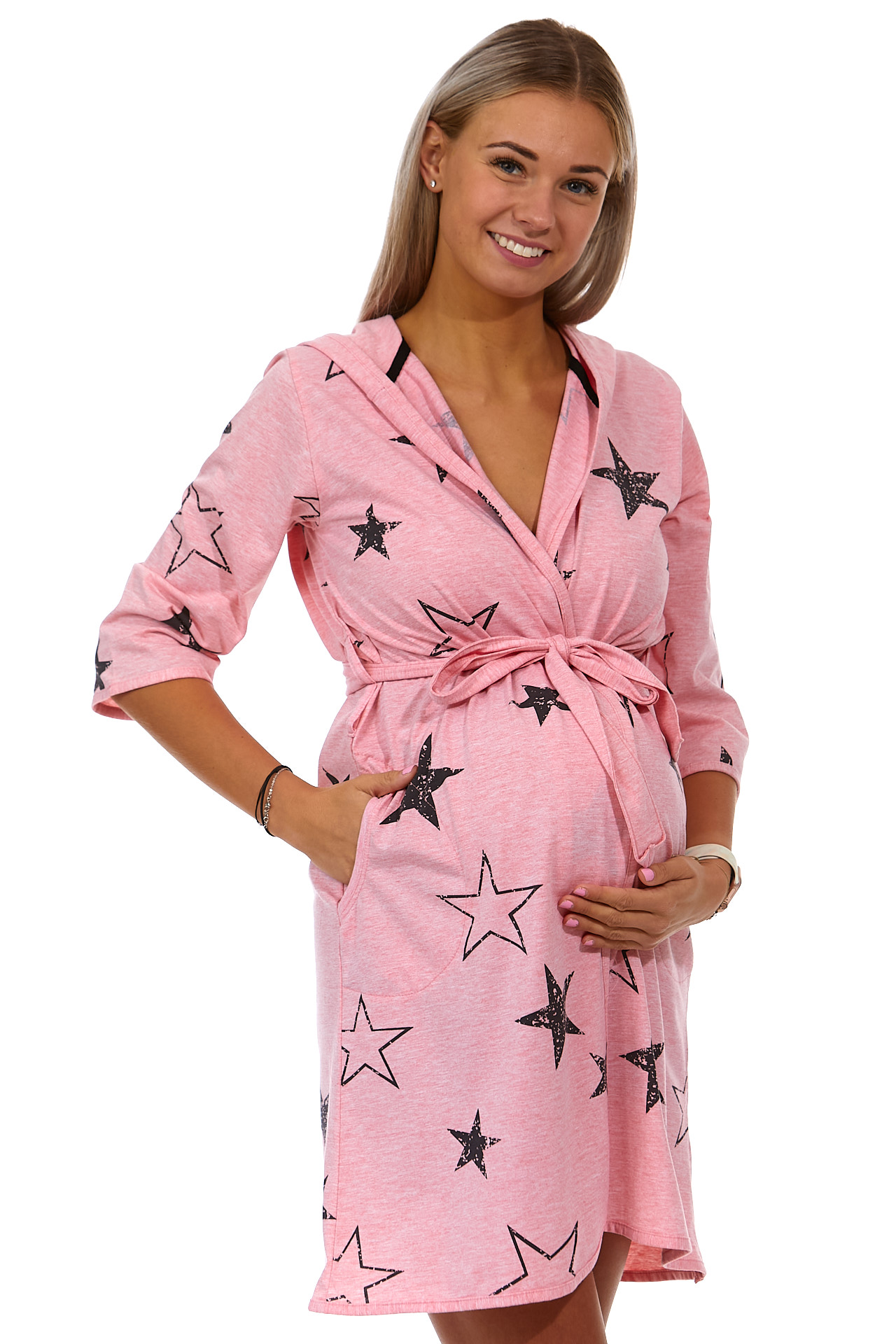Růžový župan do porodnice na kojení s kapucí - Shines Stars