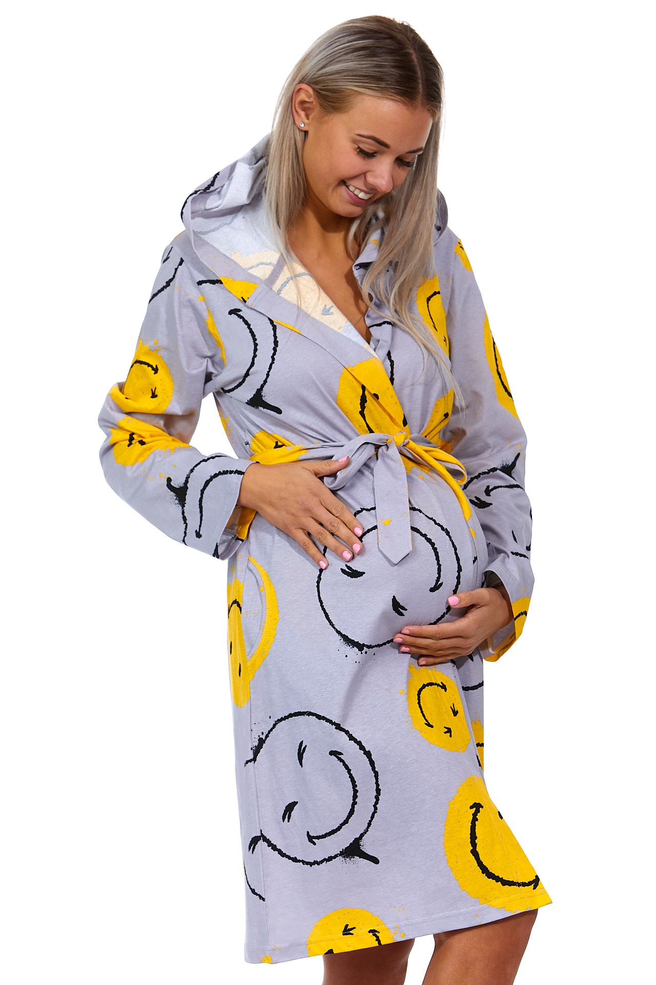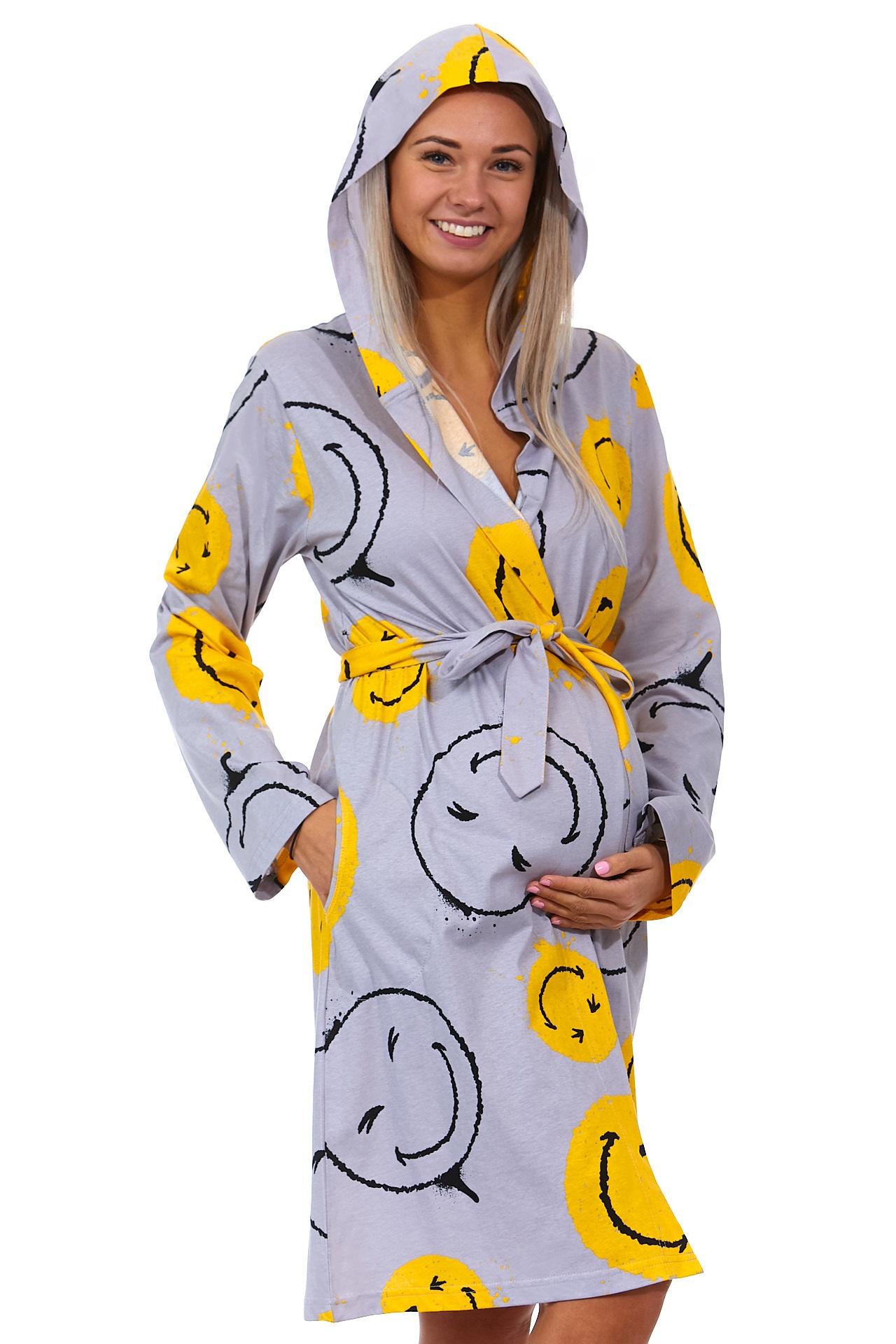 Žlutý i šedý župan do porodnice na kojení - SMAJLÍCI