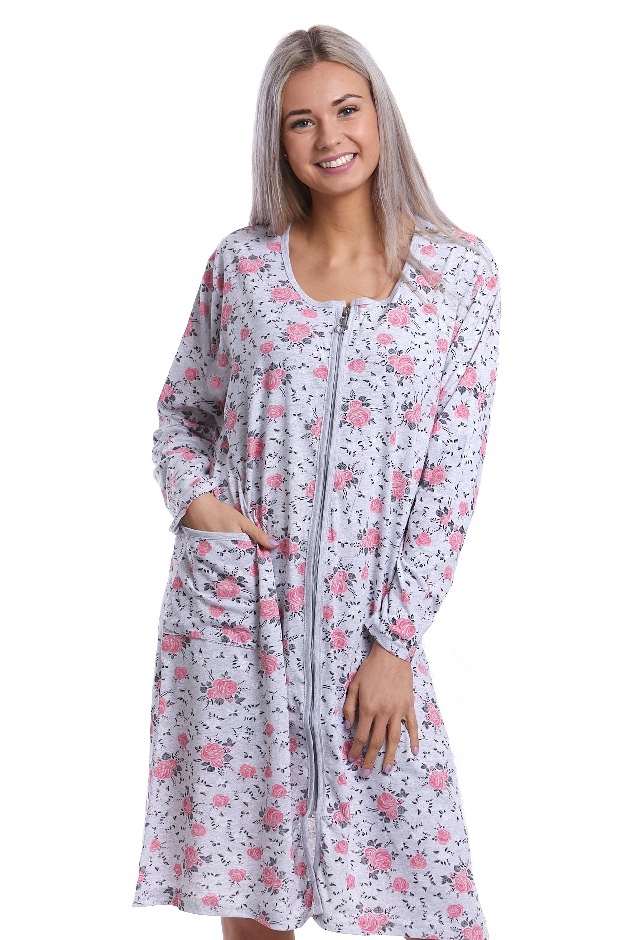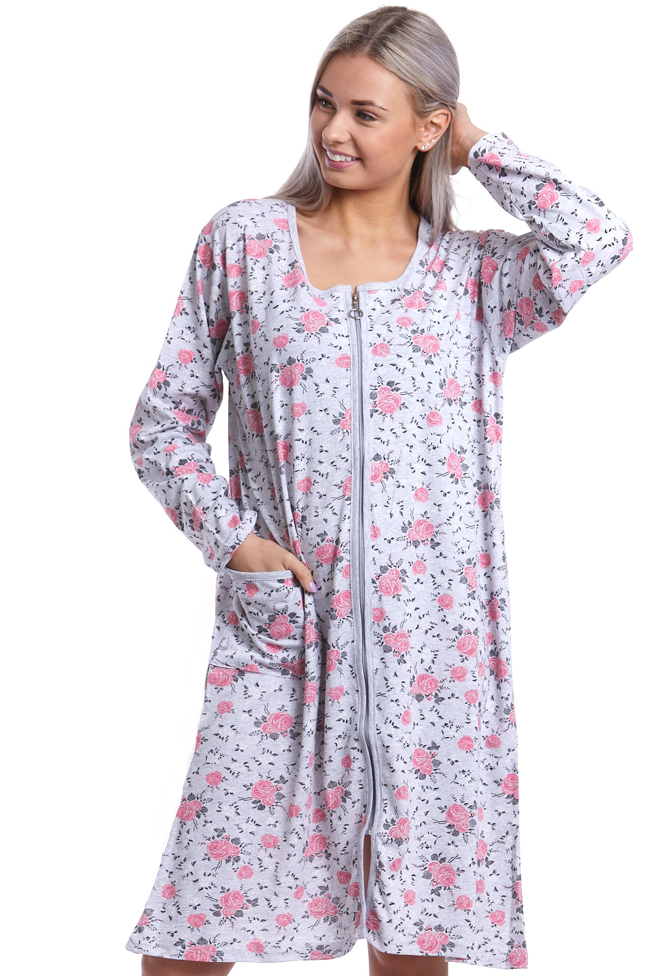 Růžičkový šedý župan nebo košilka pro ženy na zip