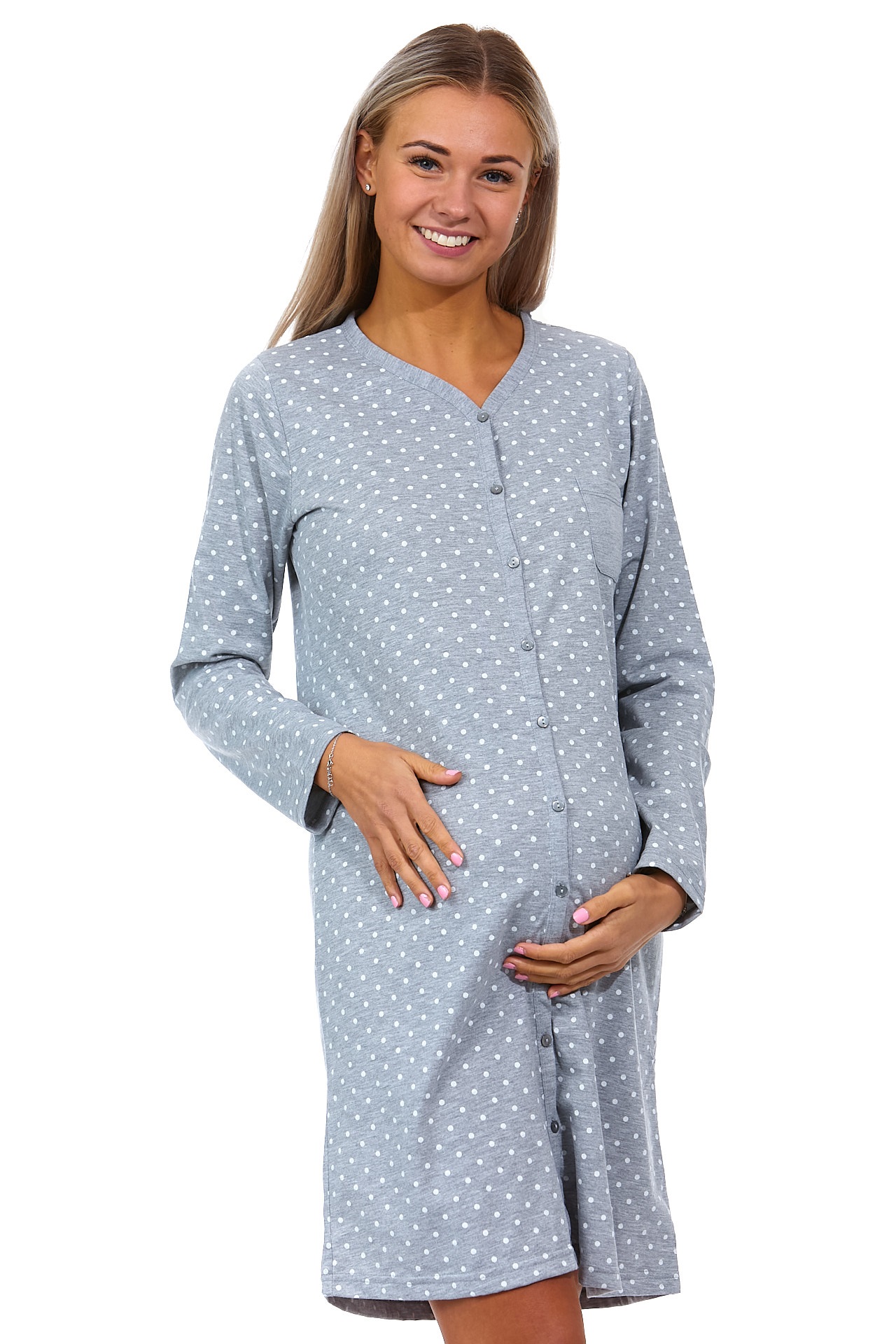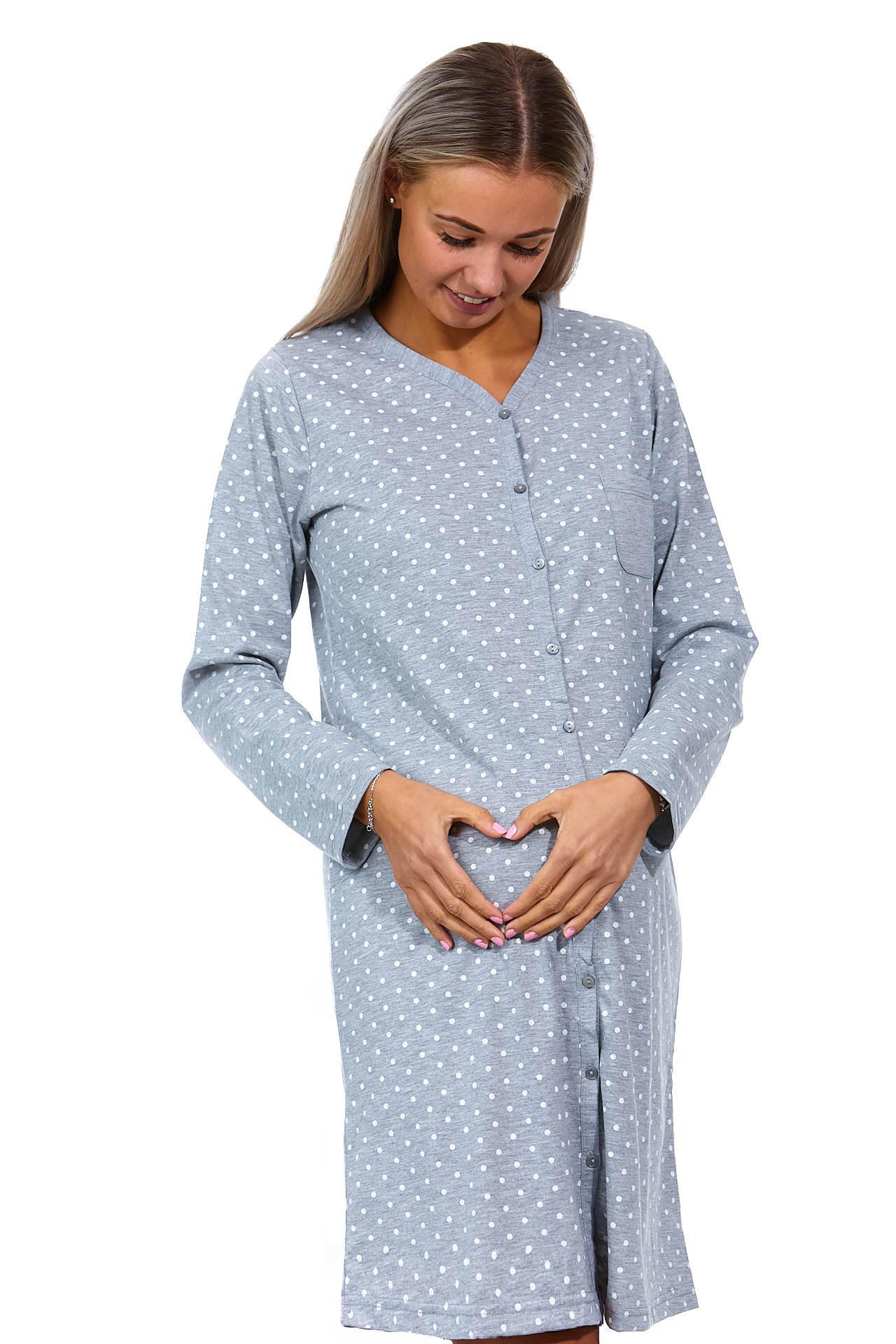 Šedá a bíle puntíkatá košilka na kojení i těhotenská, celo propínací, dlouhý rukáv 1G0472