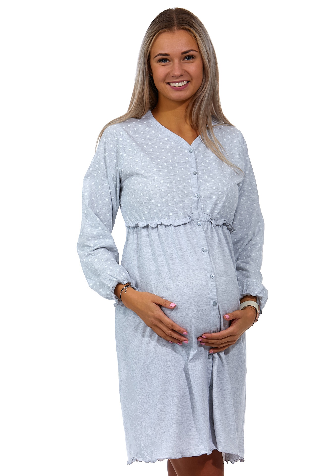 Šedý i bíle puntíkaty župan nebo košilka těhotenská i kojící celopropínací 1C3200