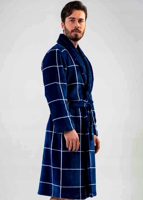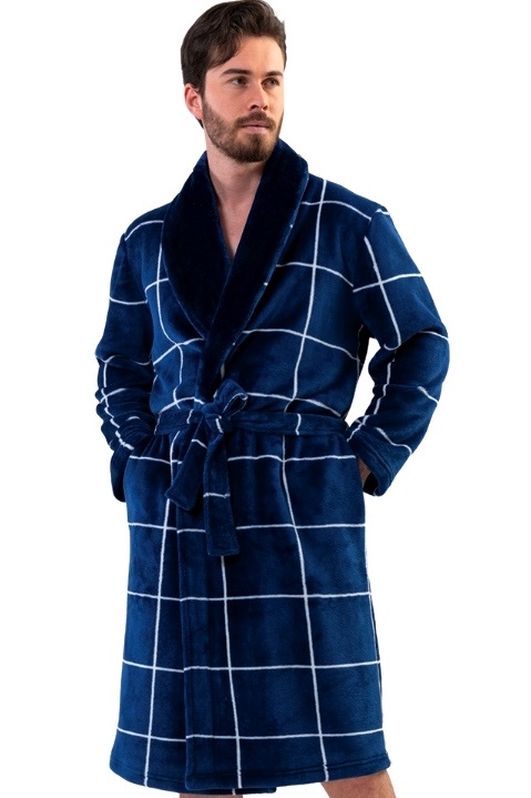 Župan pánský s límcem z krásného huňatého materiálu, má dvě hluboké kapsy po stranách
